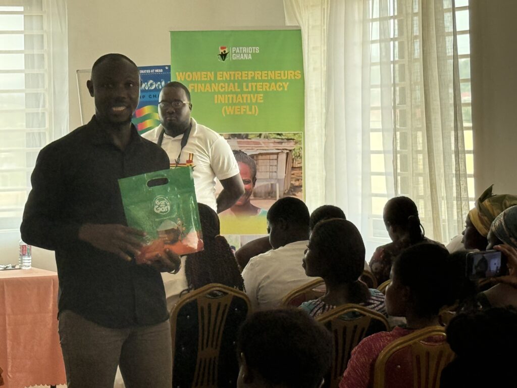 He reaffirmed Patriots Ghana’s commitment to continued investment in women entrepreneurs through training, access to funding, mentorship, and strategic collaborations. Dr. Agyemang also highlighted ongoing efforts to expand market access for WEFLI beneficiaries, including partnerships with local high schools and universities to create demand for products such as gari and other goods commonly used by students. He further expressed Patriots Ghana’s interest in strengthening partnerships with MoFA and other government agencies to explore both local and international market opportunities for WEFLI-supported enterprises. Dr. Agyemang also expressed sincere appreciation to Otto Per Mille Valdese, Italy, for their partnership and funding support to help train these women and provide the needed coaching to advance their financial freedom.